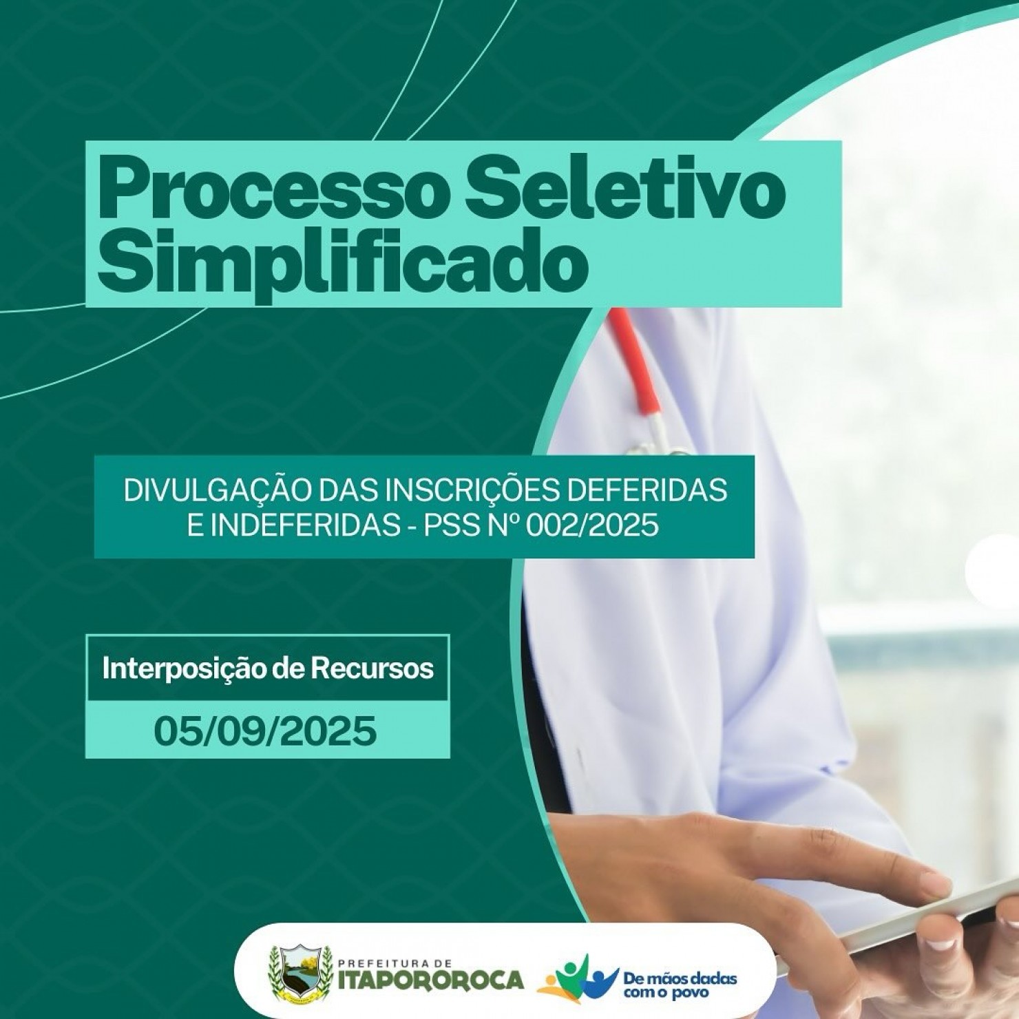A Prefeitura de Itapororoca informa: já está disponível a divulgação das inscrições deferidas e indeferidas do Processo Seletivo Simplificado – PSS nº 002/2025.