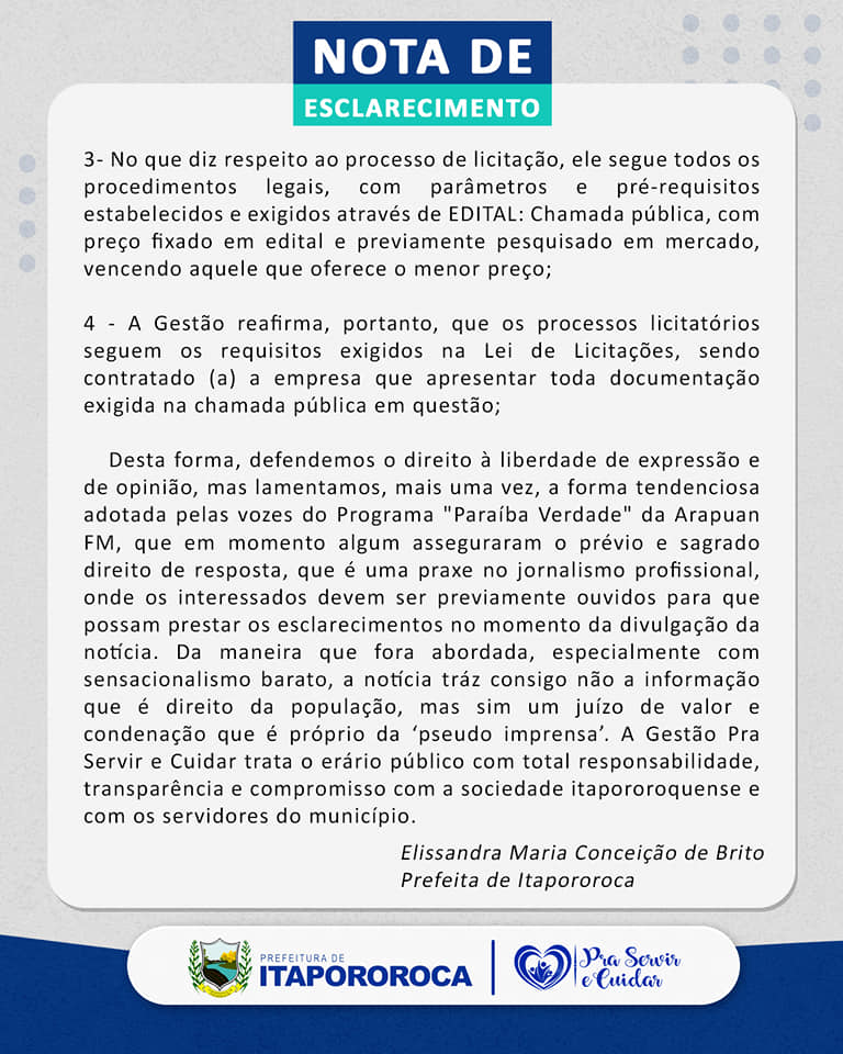 NOTA DE ESCLARECIMENTO