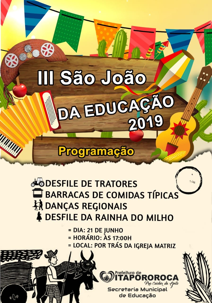 Convidamos você e sua família para juntos participarmos do São João da Educação (2019), um momento de exposição e valorização da nossa cultura Nordestina.