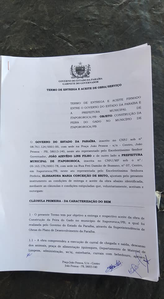 A Prefeitura de Itapororoca-PB, através de sua Prefeita Constitucional, Elissandra Brito, recebeu do Governador João Azevedo a entrega da Feira do Gado do nosso município.